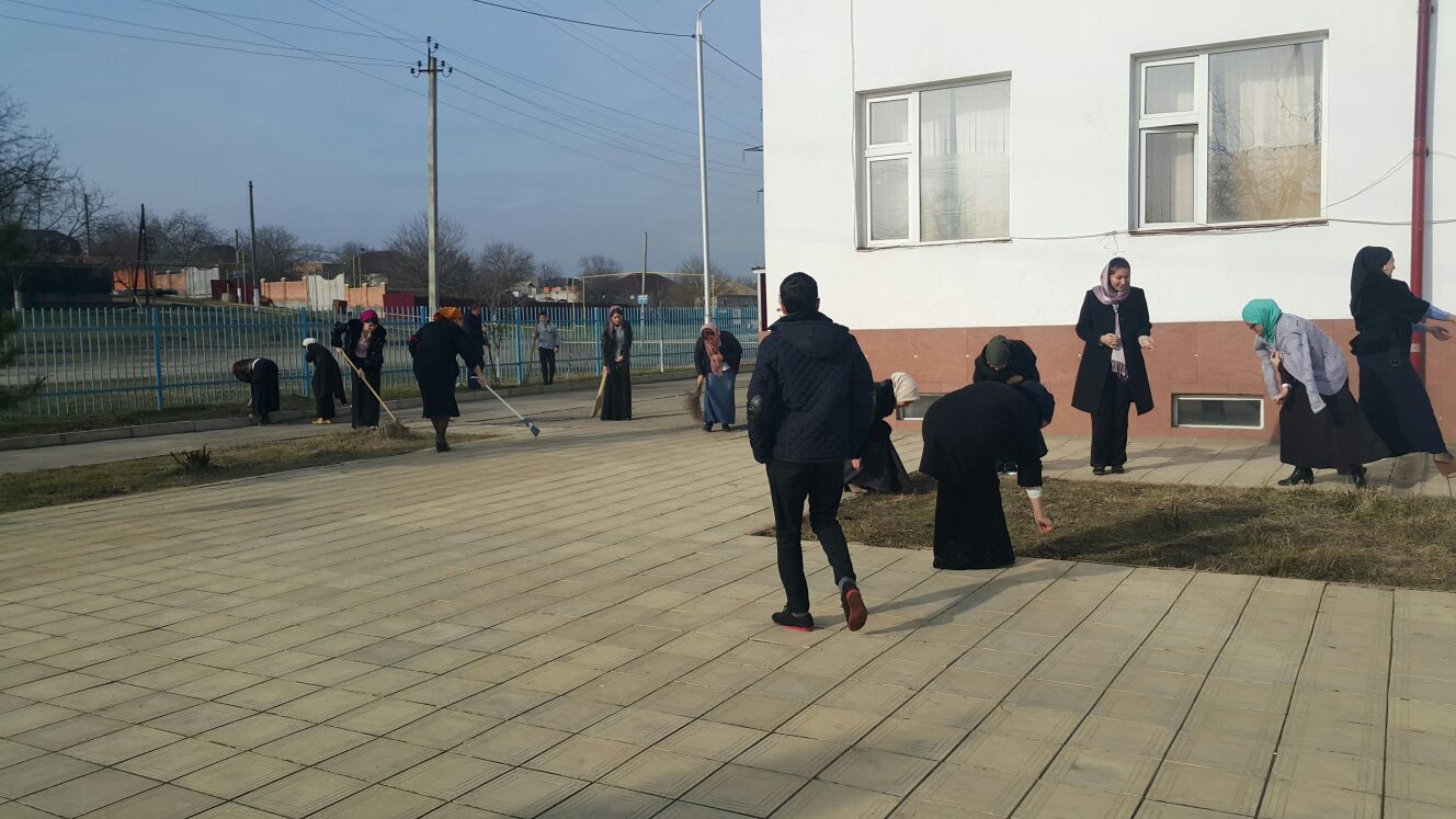 01.03.2016С 1 по 5 марта 2016 года в школе прошла трудовая неделя. В рамках данной недели, активистами патриотического отряда «Юные Кадыровцы» и членами школьного ученического самоуправления, была подготовлена и проведена операция «Чистый двор». Суть операции заключалась в том, чтобы привести в порядок школьную и прилегающую к ней территорию. В проведении операции «Чистый двор» приняли участие учащиеся 5-11 классов.