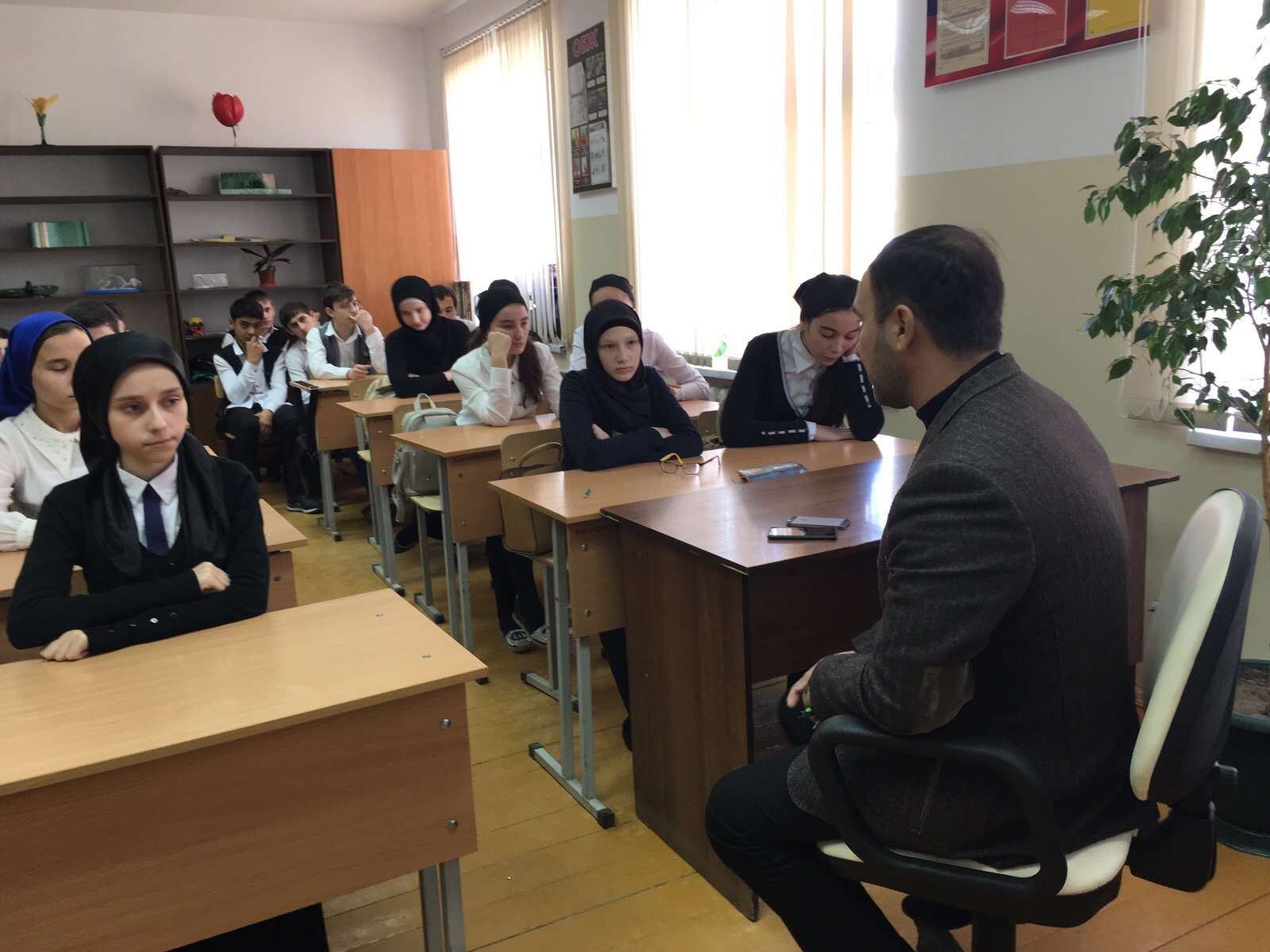 В школе состоялась встреча с представителей движения "Ахмат" с учащимися 9-11 кл. на тему: « А.Х. Кадыров – символ мира и единства».