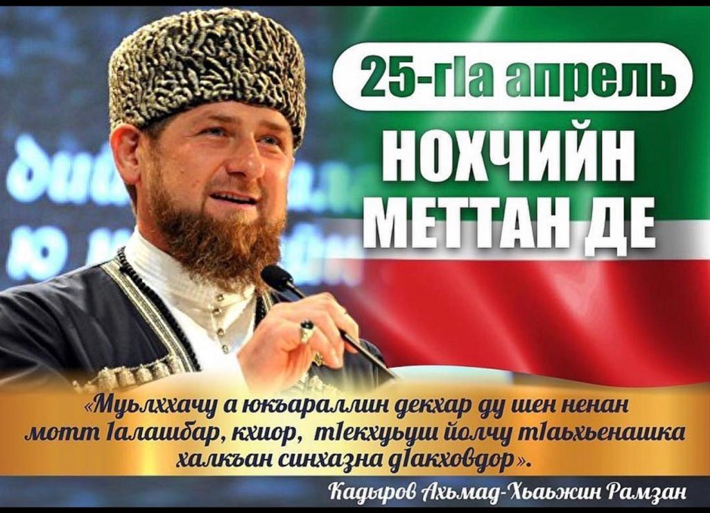 Тахана, х1окху 25-чу апрелан дезчу дийнахь, Соьлжа-г1алара 63 йолчу школан администрацин а, хьехархойн ц1арах даггара декъалдо шу Нохчийн меттан Денца! Тахана а, тахханалц а вайн мехкан Куьйгалхочун Кадыров Рамзанан Указца 25-г1а апрель "Нохчийн меттан Де" д1акхайкхорца шуьйра схьайиллина ю халкъана шайн мотт 1аморан таронаш. Иштта схьакхайкхош ду оцу шуьйрачу таронех буьззина пайда а оьцуш, ненан мотт кхиорца, 1аморца къоман 1адаташ, г1иллакхаш, эхь-бехк вай дендан дезаш хилар. Школашкахь, телевиденехь, радиохь, газетан аг1онаш т1ехь шуьйра дуьйцуш ду Нохчийн меттан, г1иллакхийн, оьздангаллин мехаллех а, дозаллех а лаьцна. Ткъа уьш дерриш а вайн маттехула бен лела йиш йолуш а дац. Теша лаьа Нохчийн мотт кхиорехь, кхоман г1иллакхаш лардарехь, вай массара а кхид1а къахьоьгуш, оцу новкъахь баккхий кхиамаш бохург хиларх.Нохчийн мотт кхио а, цуьнан сий дан а хьуьнар а, хьекъал а кхочийла вайн массеран а! Дала т1аьхье беркате йойла х1окху Дийнан!!!