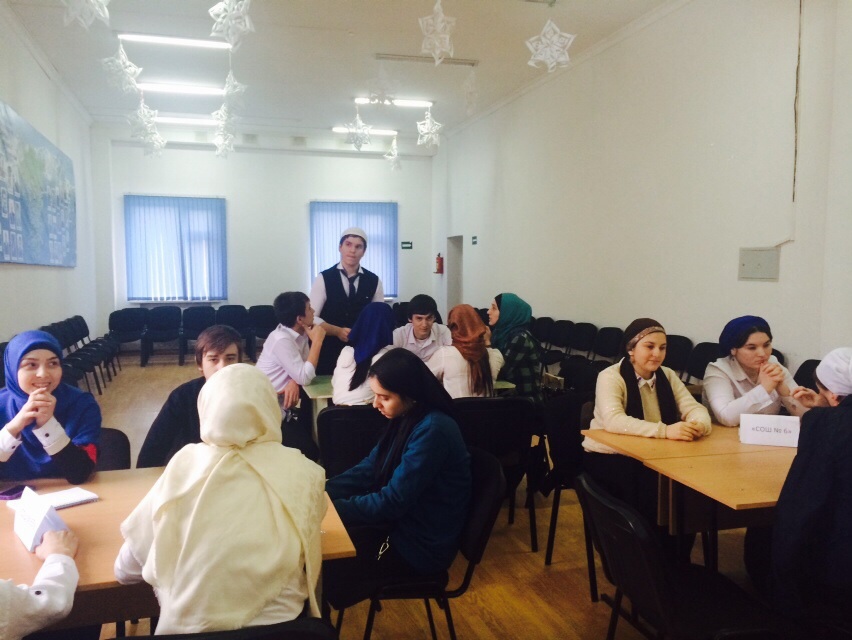 28.01.201528.01.15. в школе прошла игра «Увлекательный мир Ислама» между школами Заводского района(№ 50, №6 и № 63). Программа конкурса включала 3 этапа;1 этап- блиц вопросы, 2 этап- вопросы капитанам, 3 этап- задание на знание арабского языка. По итогам игры первое место присудили школе № 63.И как победитель СОШ № 63 будет участвовать во втором туре конкурса! А после игры как гостеприимные хозяева ребята, отвели гостей в столовую, где они обсуждали насущные вопросы в дружеской атмосфере.