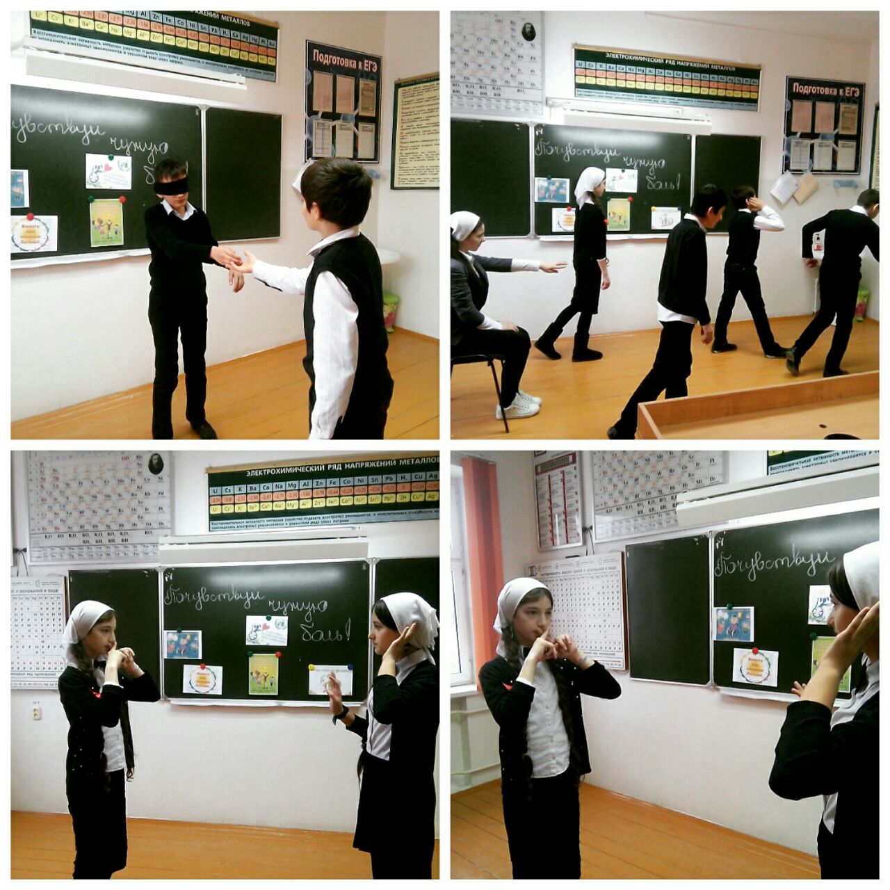 В рамках празднования Международного дня инвалидов, педагог- психолог Муртазалиева З.Х. с учащимися 7 "а" класса провела урок-тренинг " Почувствуй чужую боль".