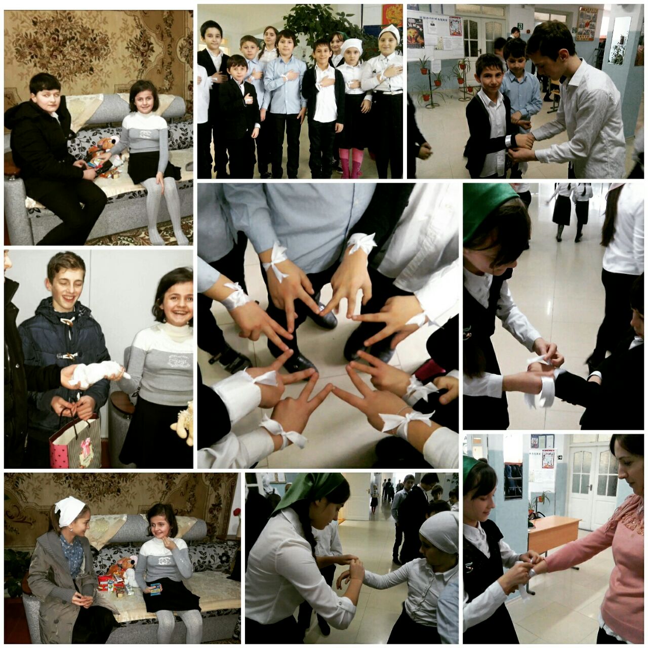 В рамках празднования Международного дня инвалидов в школе прошла акция " Белая ленточка". Также члены патриотического отряда "Юные Кадыровцы" посетили ученицу 4 "б" класса Матсиеву Фатиму обучающуюся на дому.