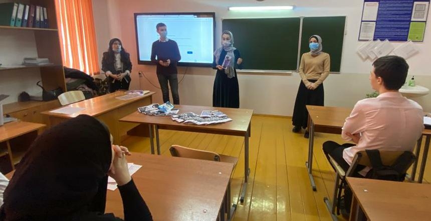 В рамках реализации нацпроекта "Образование" и федеральной программы "Успех каждого ребенка", с целью профориентации учащихся выпускных классов 15.02.22г.в нашей школе состоялась встреча представителей факультета иностранных языков ФГБОУ ВО "Чеченского Государственного Университета" с учащимися 9-11классов.