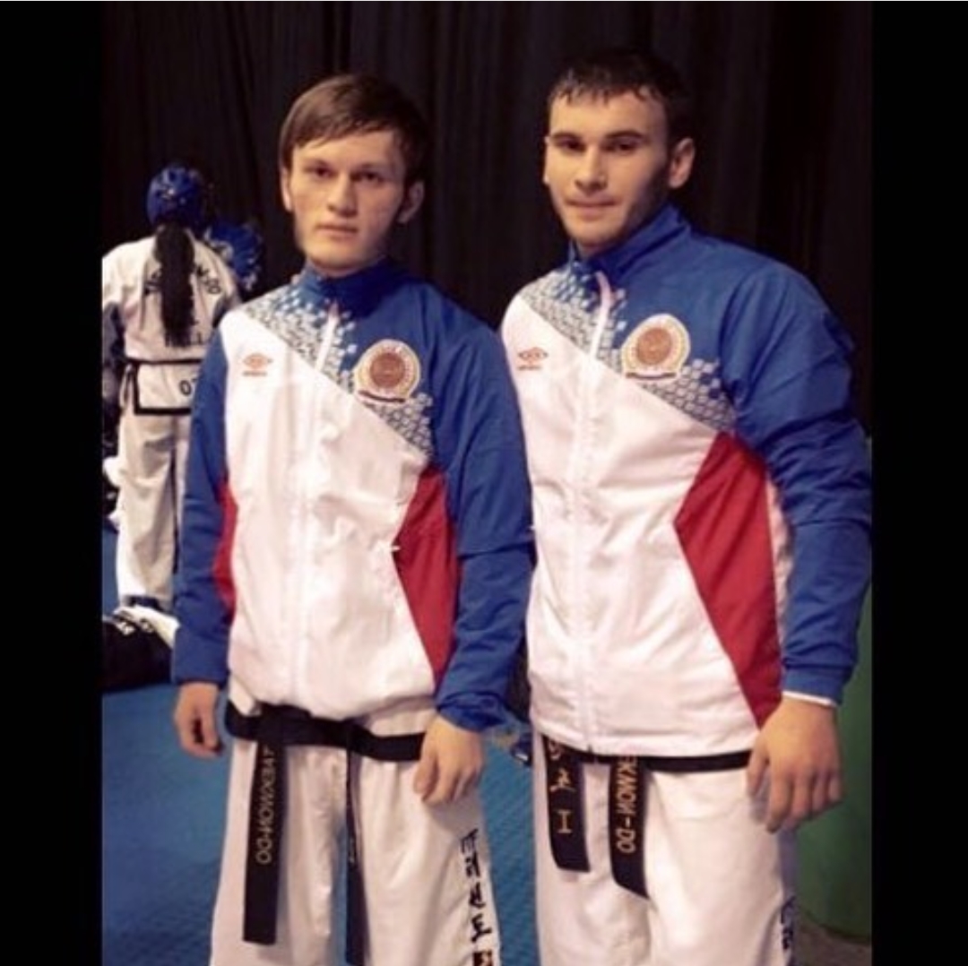 Учитель физкультуры Хуцаев Абдул Адланович (справа) стал бронзовым призером Чемпионата Мира по тхэквандов Корее! Позравляем! Дала т1аьхье беркате йойла!