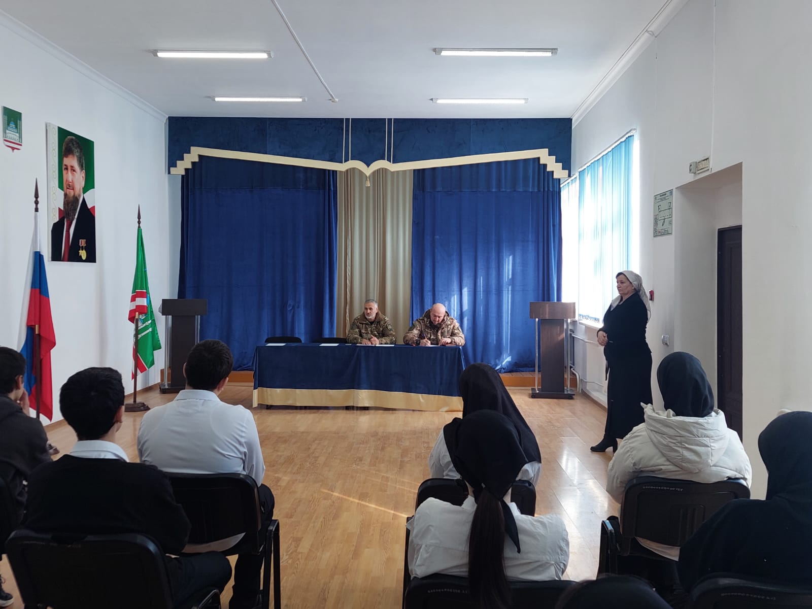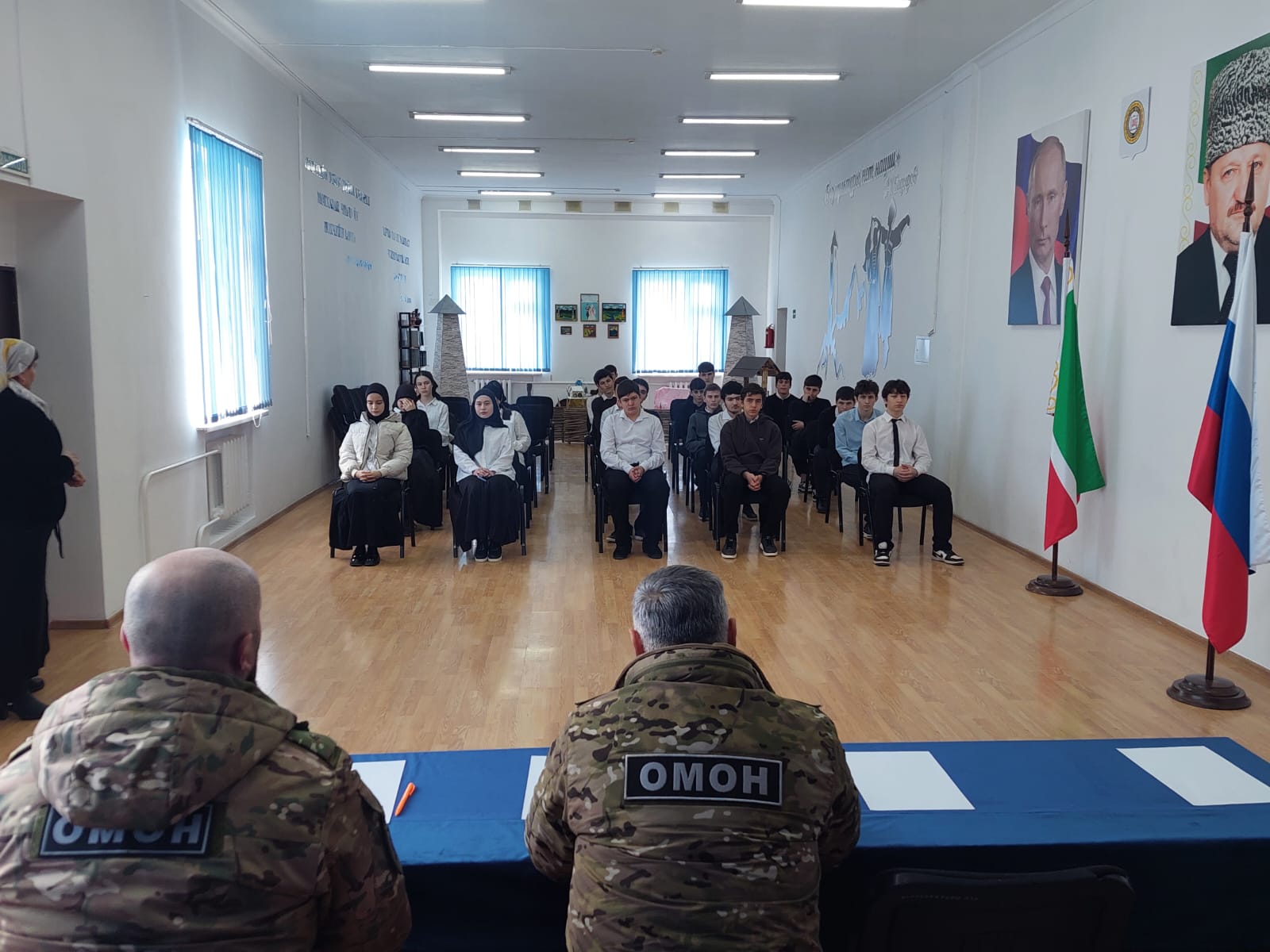 В рамках реализации федерального проекта «Патриотическое воспитание граждан Российской Федерации» нацпроекта «Образование» в СОШ №63 города Грозного представители ОМОН - АХМАТ 1 по Чеченской Республике провели встречу с учащимися 9-11 классов. Совокупное количество участников составило 48 человек.