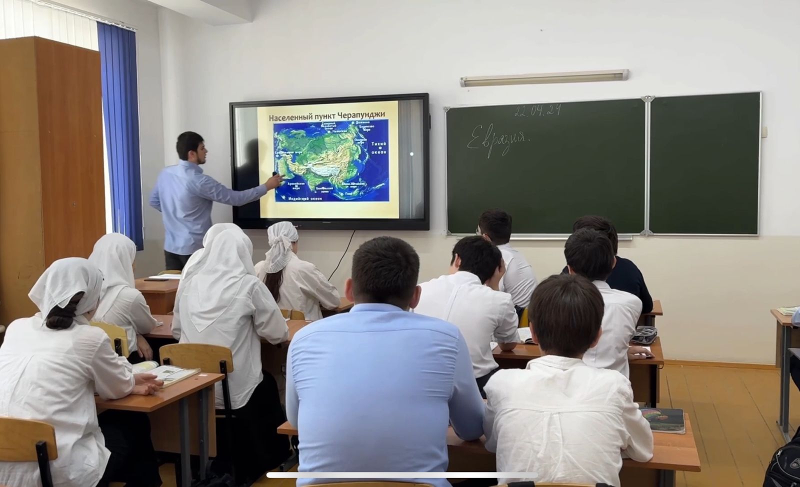 15.04.2024В рамках реализации муниципального проекта «Уроки в Грозном» в МБОУ «СОШ №63» г. Грозного прошёл открытый урок географии в 7 А классе на тему: «Географическое положение и исследование Евразии.».