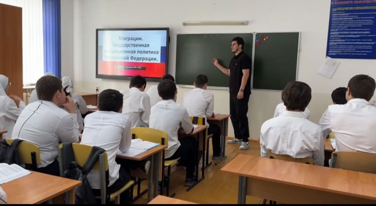 23.04.2024В рамках реализации муниципального проекта «Уроки в Грозном» в МБОУ «СОШ №63» г. Грозного прошёл открытый урок географии в 8 А классе на тему: «Миграционные процессы и миграционная политика государств»