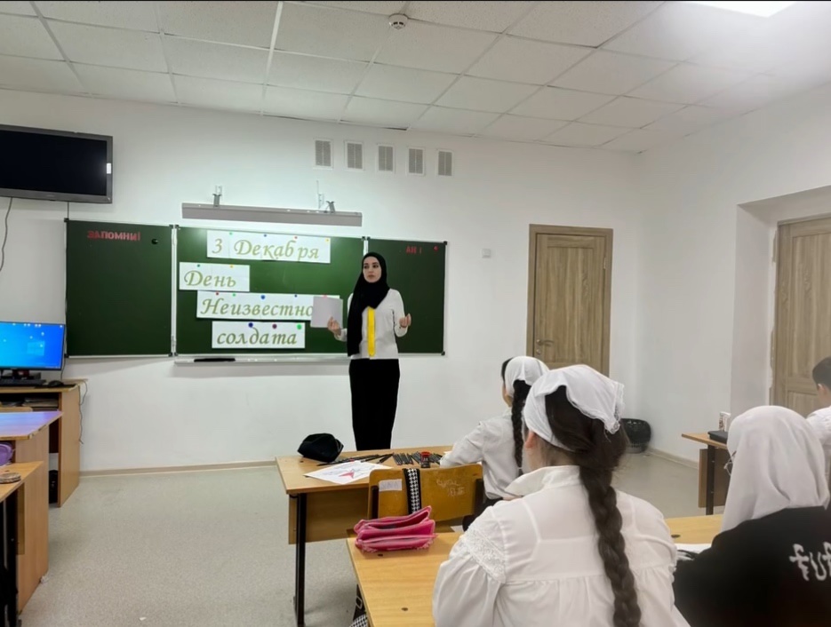 Ко дню памяти неизвестного солдата в нашей школе прошло мероприятие под названием «Память поколений», организованное советником директора по воспитанию Шадаевой С.А..Цель данного мероприятия заключалась в том, чтобы воспитать у учащихся уважение к истории и памяти тех, кто отдал свою жизнь за родину.В ходе мероприятия обучающиеся имели возможность выразить свои чувства и мысли через искусство, создавая рисунки, посвященные памяти неизвестного солдата. Каждый рисунок стал отражением личных переживаний и осознания значимости исторических событий.Такое мероприятие способствует формированию патриотических чувств у молодежи, а также укрепляет связь между поколениями, позволяя детям и подросткам осознать, что память о прошлом — это важная часть их идентичности.