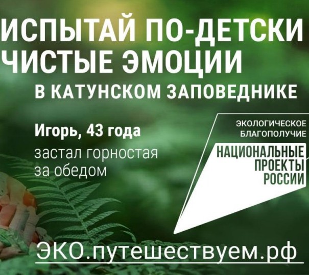 19 мая АНО «Национальные приоритеты» совместно с Министерством природных ресурсов и экологии России запустили рекламную кампанию национального проекта «Экологическое благополучие», посвященную экотуризму на заповедных территориях страны. В преддверии летнего туристического сезона россиян приглашают пройти экологичными маршрутами, увидеть первозданную красоту природы и посмотреть на мир глазами ребенка. В путешествии по национальным паркам можно испытать по-настоящему чистые детские эмоции – радость, восторг, удивление.