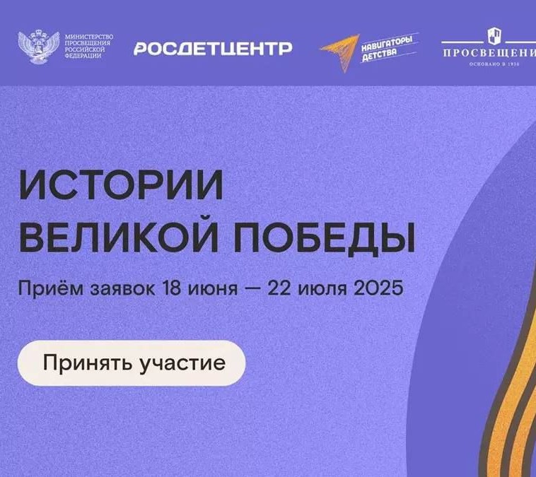 03.08.2025С 18 июня по 23 сентября 2025 года проходит конкурс, направленный на творческое развитие детей и подростков, а также на сохранение исторической памяти о Великой Отечественной войне.