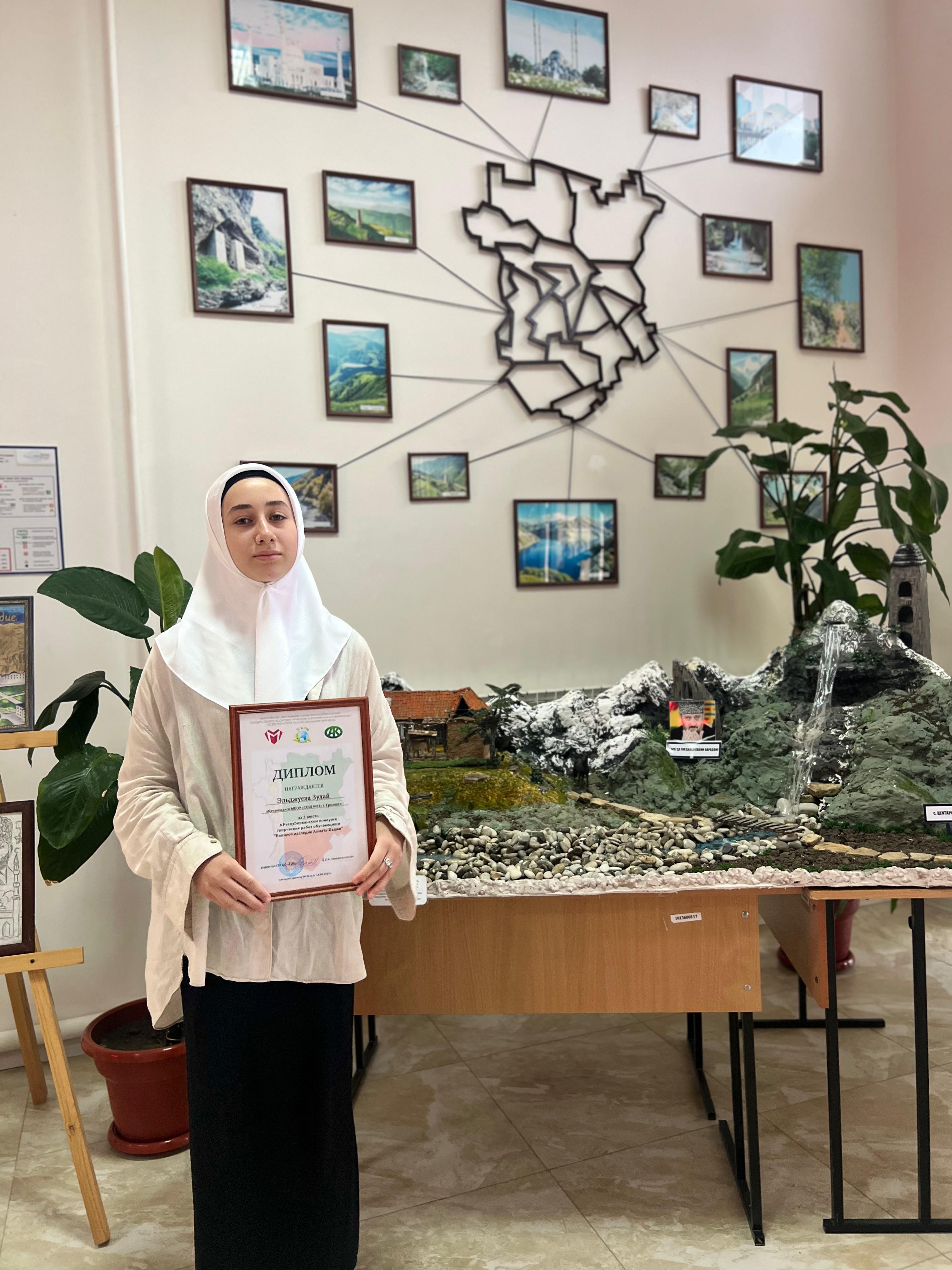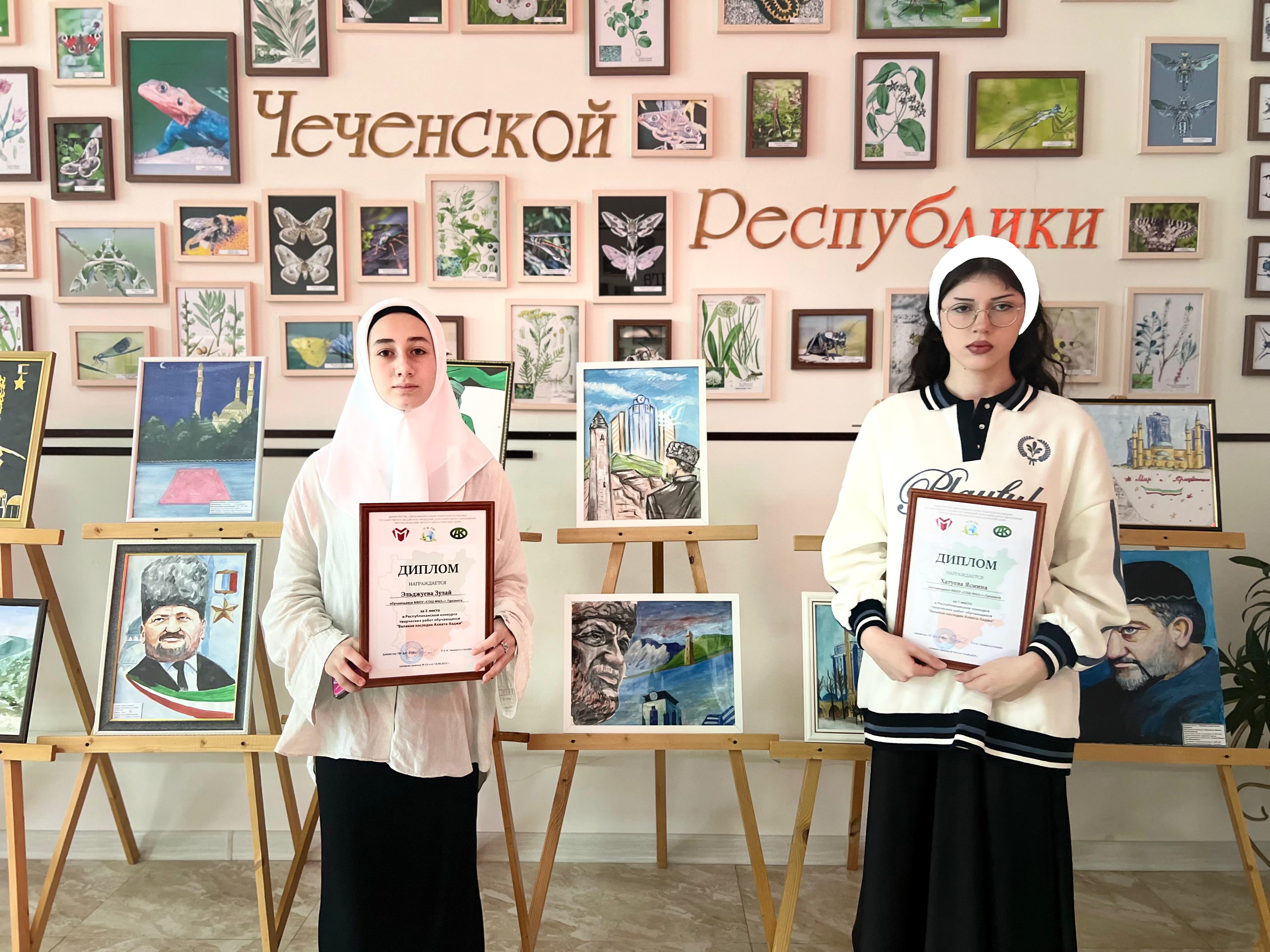 Хатуева Ясмина Магомедовна заняла заслуженное I место в номинации «Герой нашего времени» за глубокое раскрытие темы настоящего патриотизма и мужества. Эльджуева Зулай Вахидовна стала призёром, заняв III место в номинации «Наследие Ахмата Хаджи Кадырова» благодаря оригинальному подходу и творческому видению наследия.