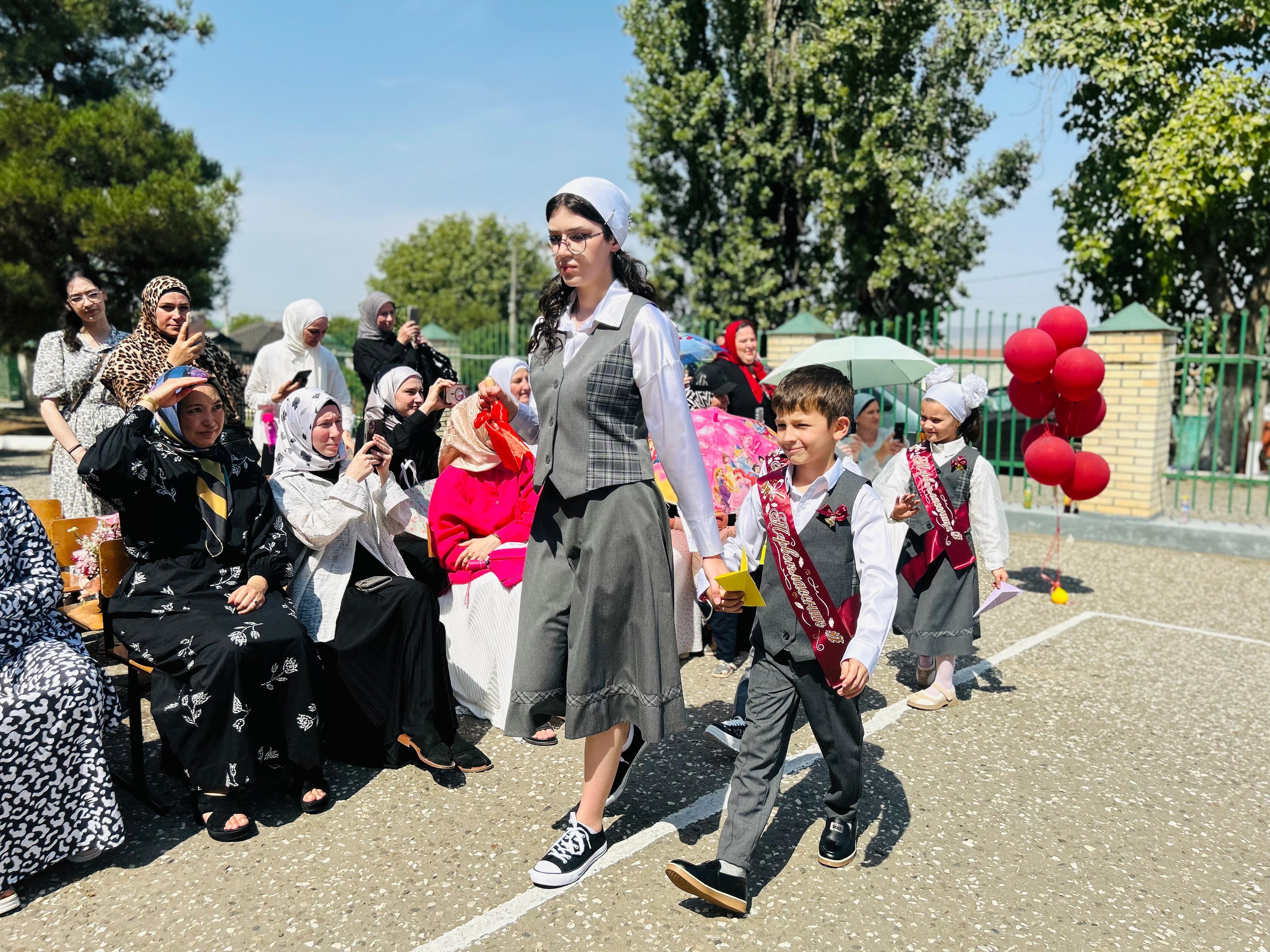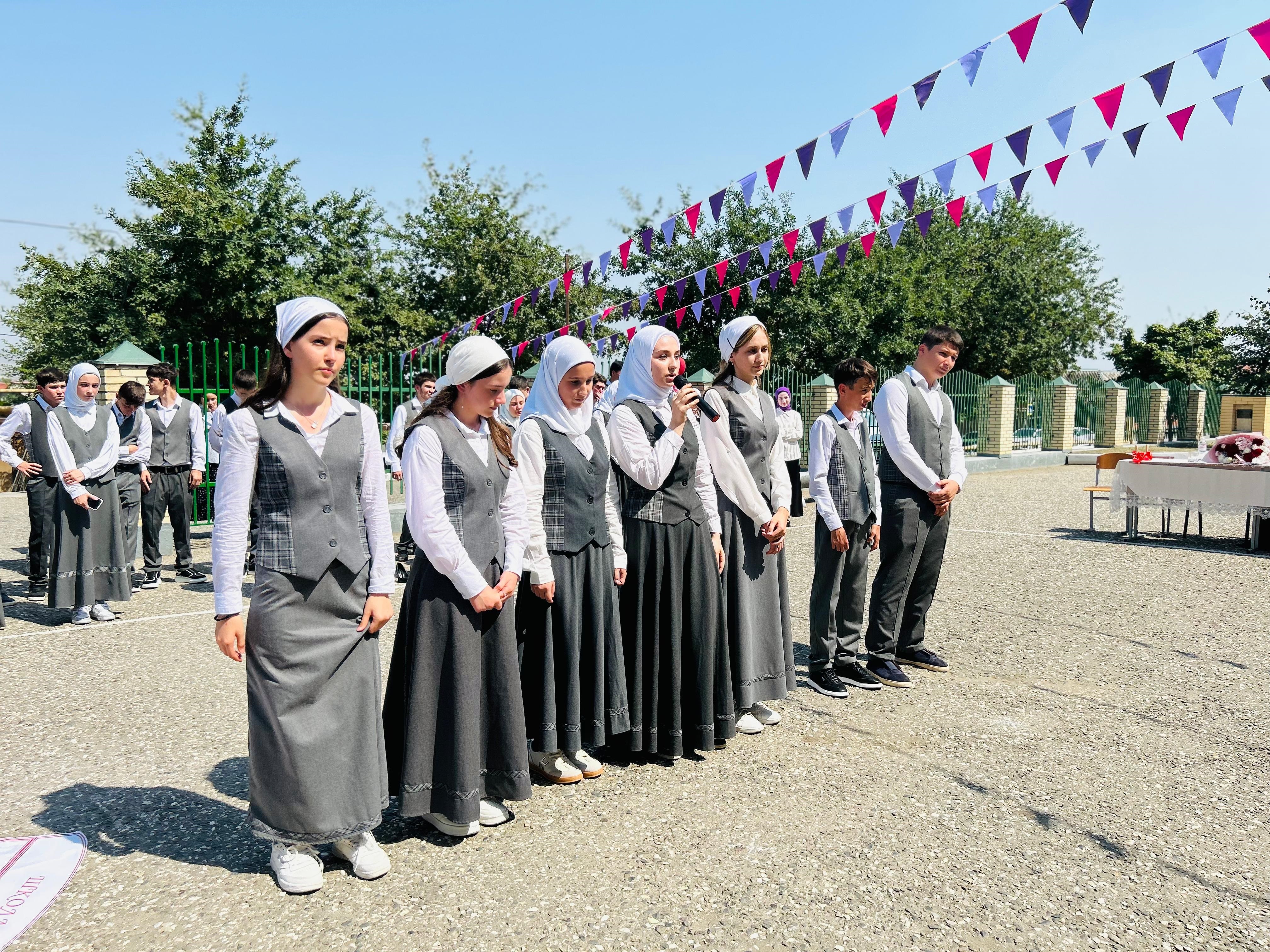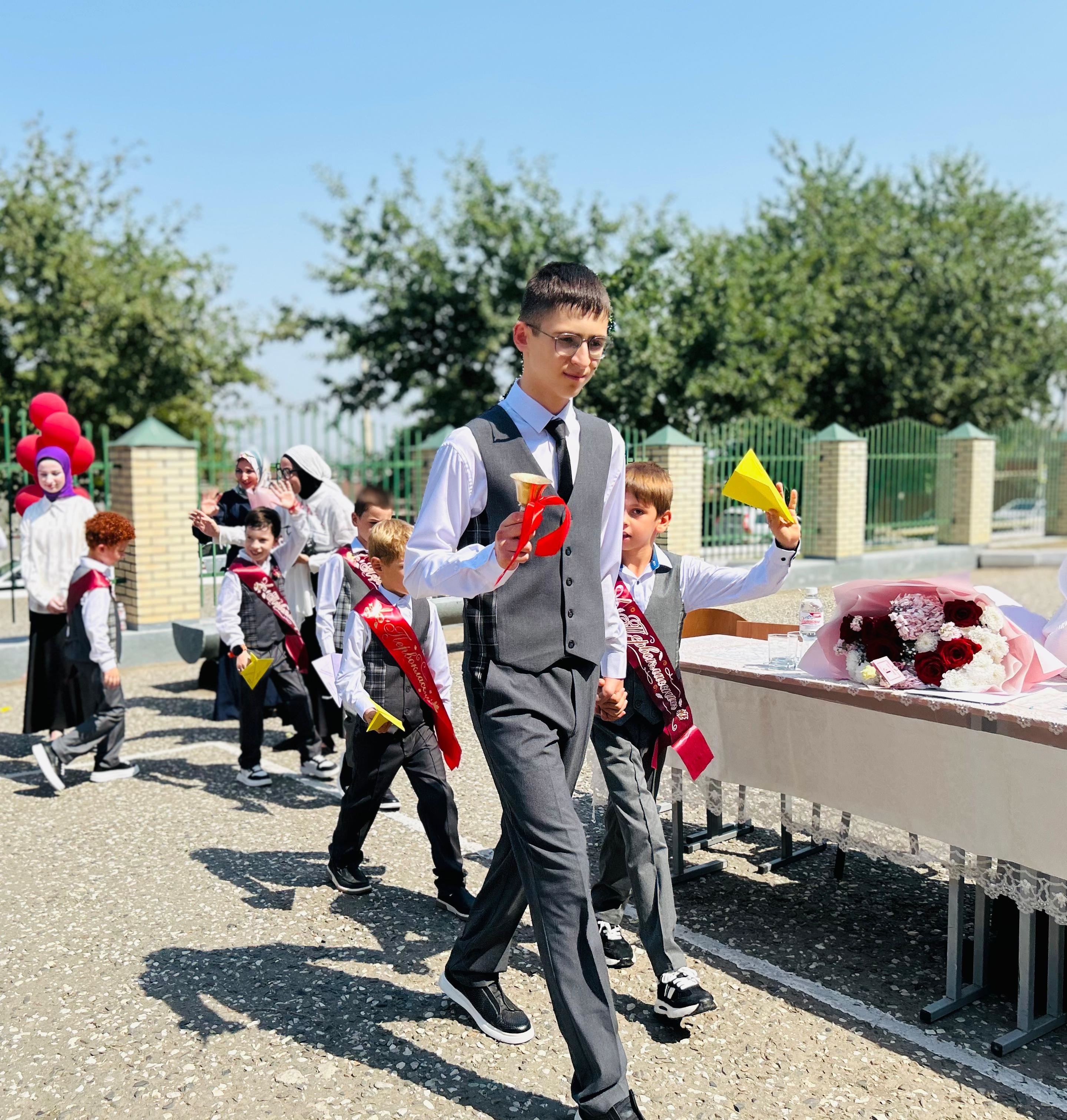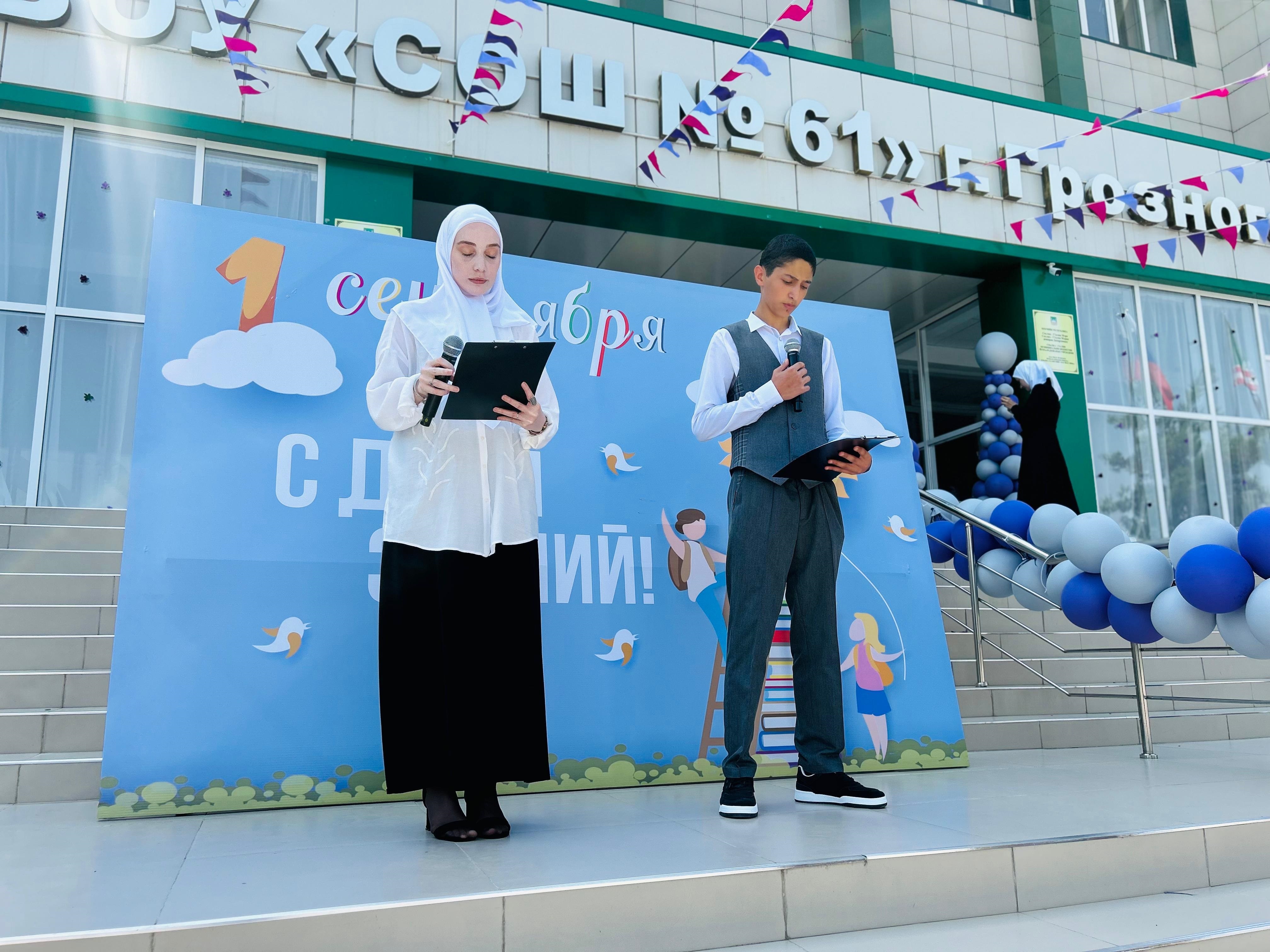01.09.2025Праздник начался с церемонии поднятия флагов и исполнения гимнов Российской Федерации и Чеченской Республики. Затем с приветственным словом выступил директор, поздравив всех с началом нового учебного года и пожелав успехов и вдохновения.