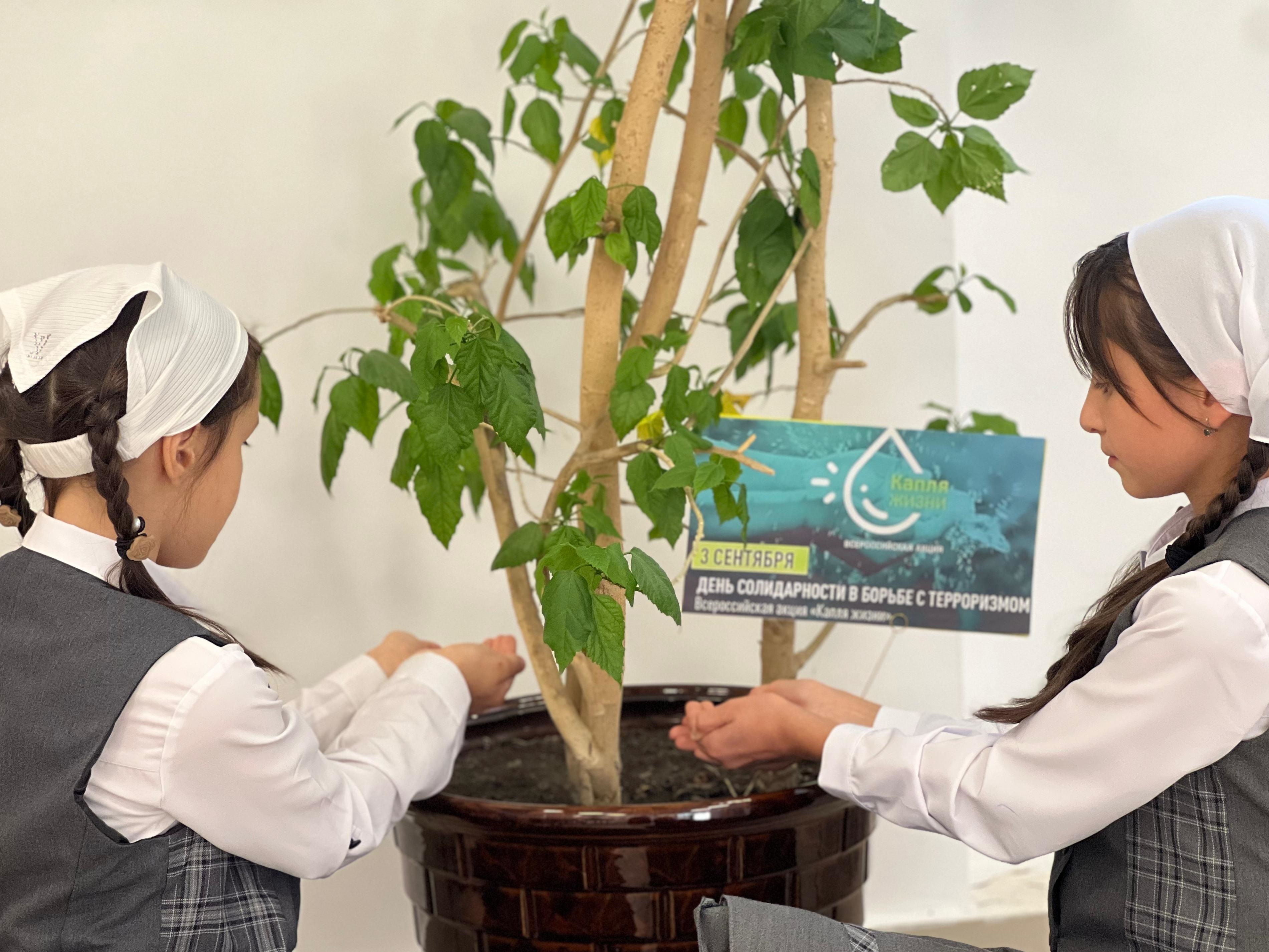 В рамках акции участники набирали воду в лодочку из сложенных ладоней и поливали ею растения. Этот символический жест означает память о тех, кто пострадал от террора, и нашу решимость противостоять угрозам. Вода, как символ жизни, напоминает о жертвах и важности мира.