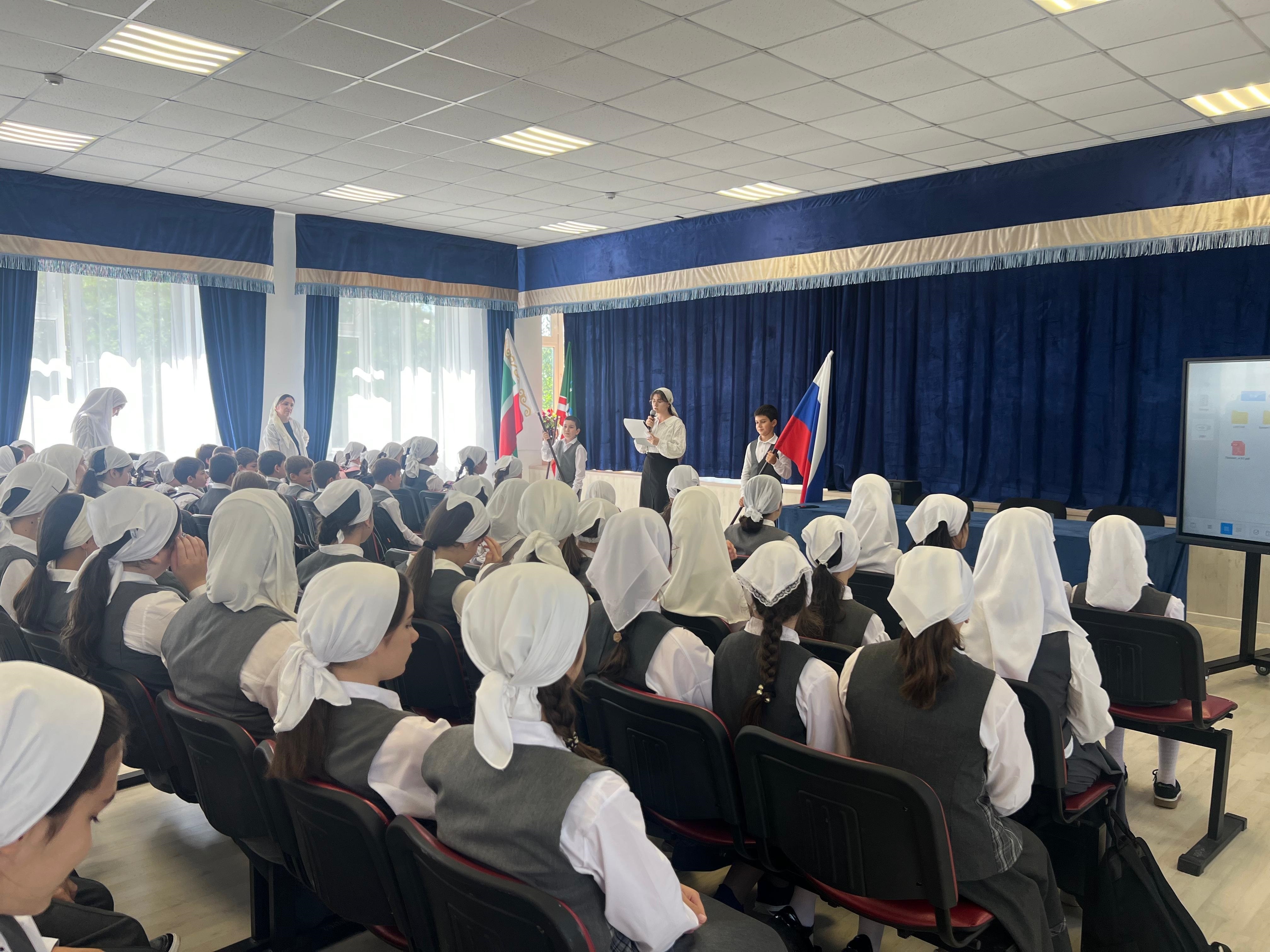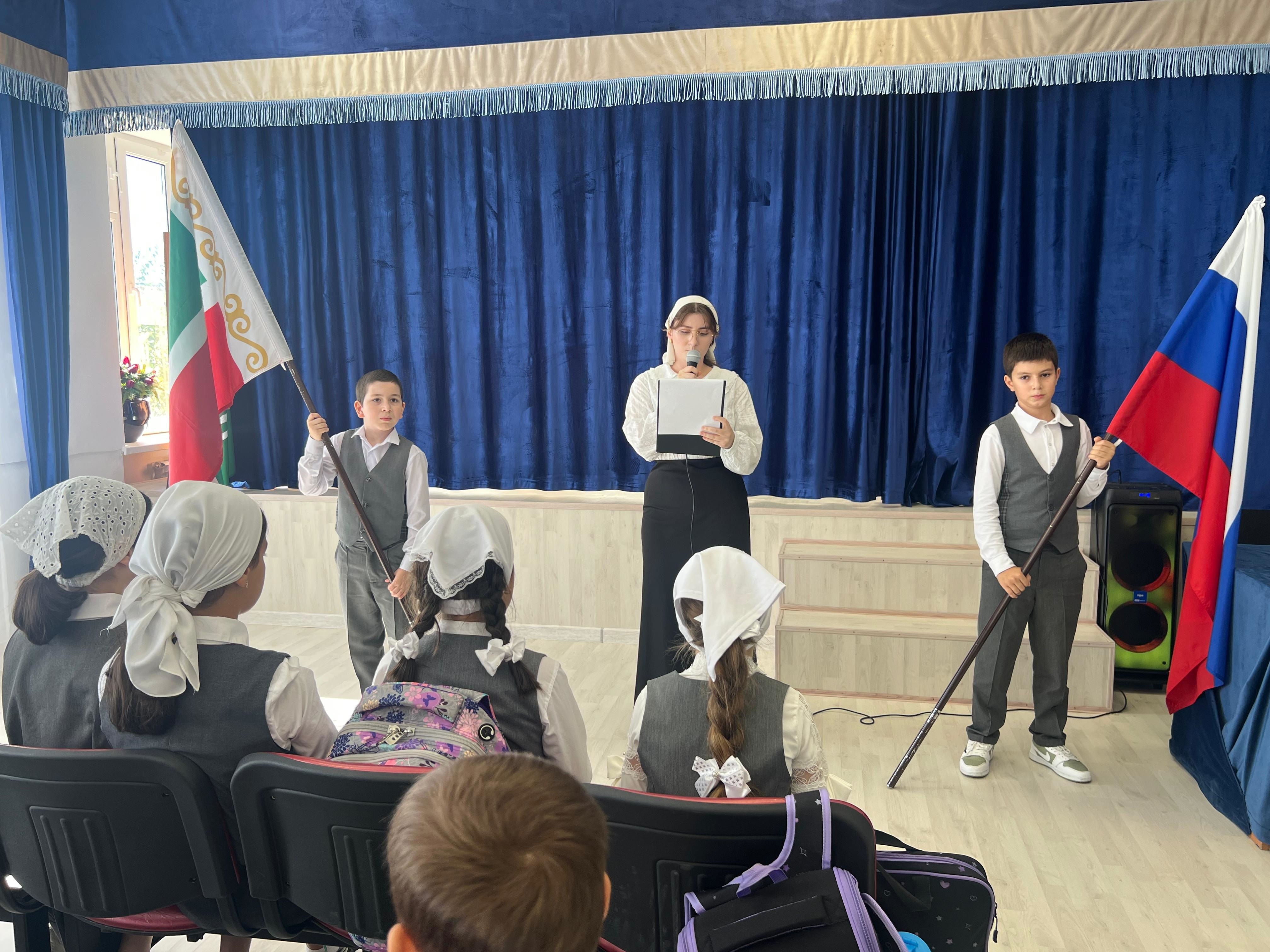 15.09.2025Добрый день! Новая учебная неделя в нашей школе по уже сложившейся доброй традиции началась с торжественной церемонии поднятия государственных флагов Российской Федерации и Чеченской Республики и исполнения гимнов.