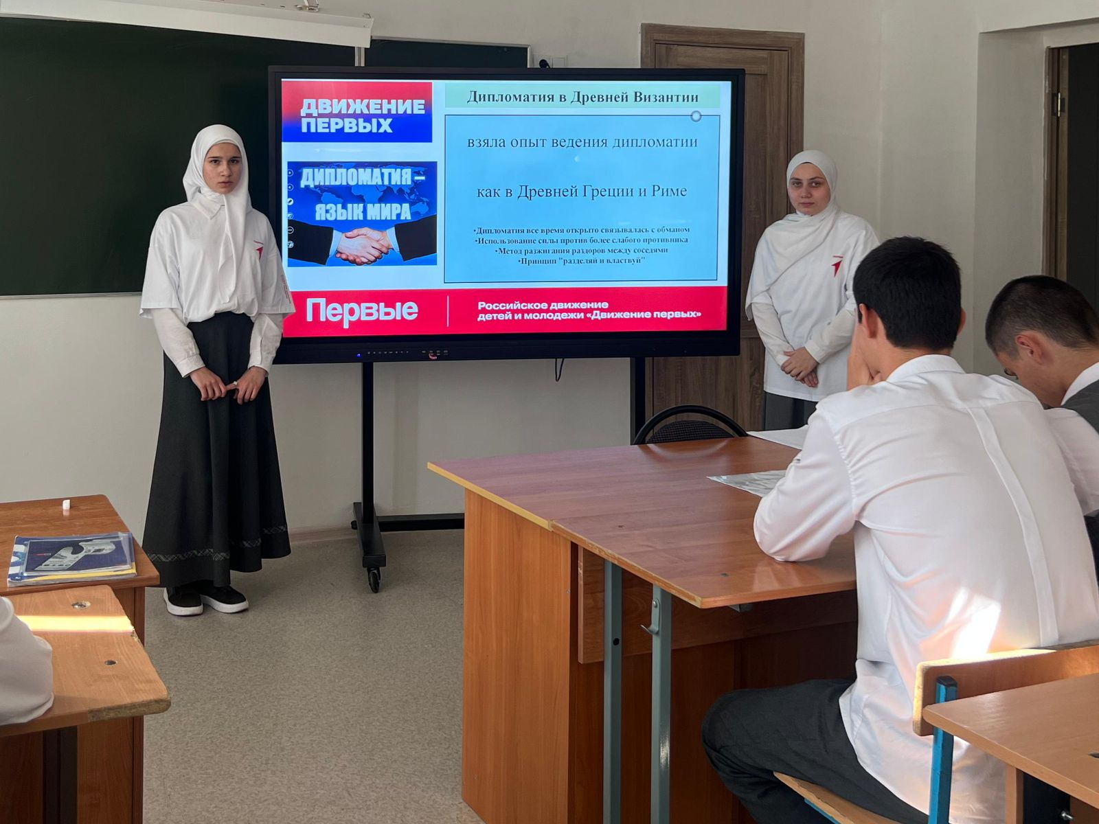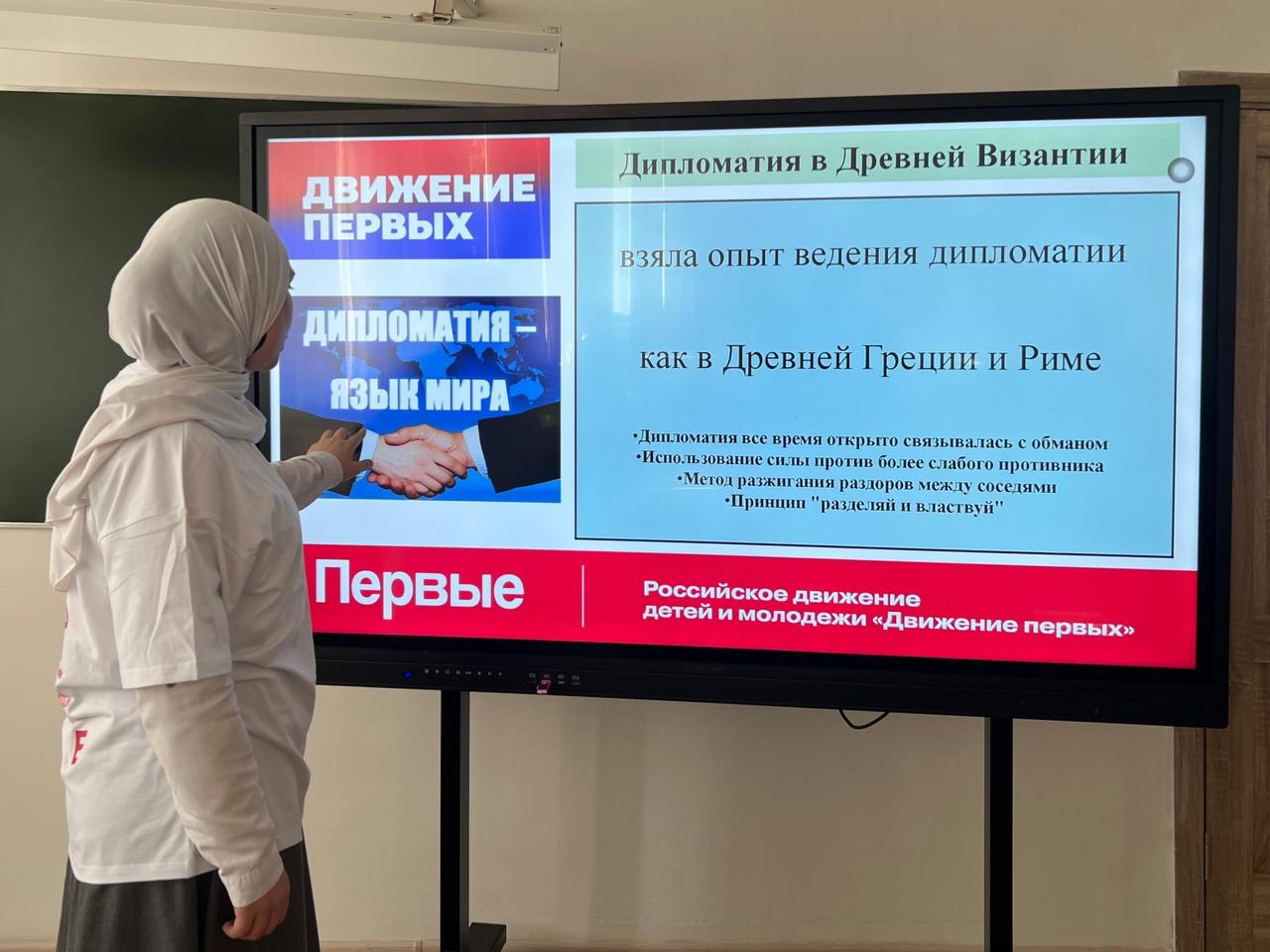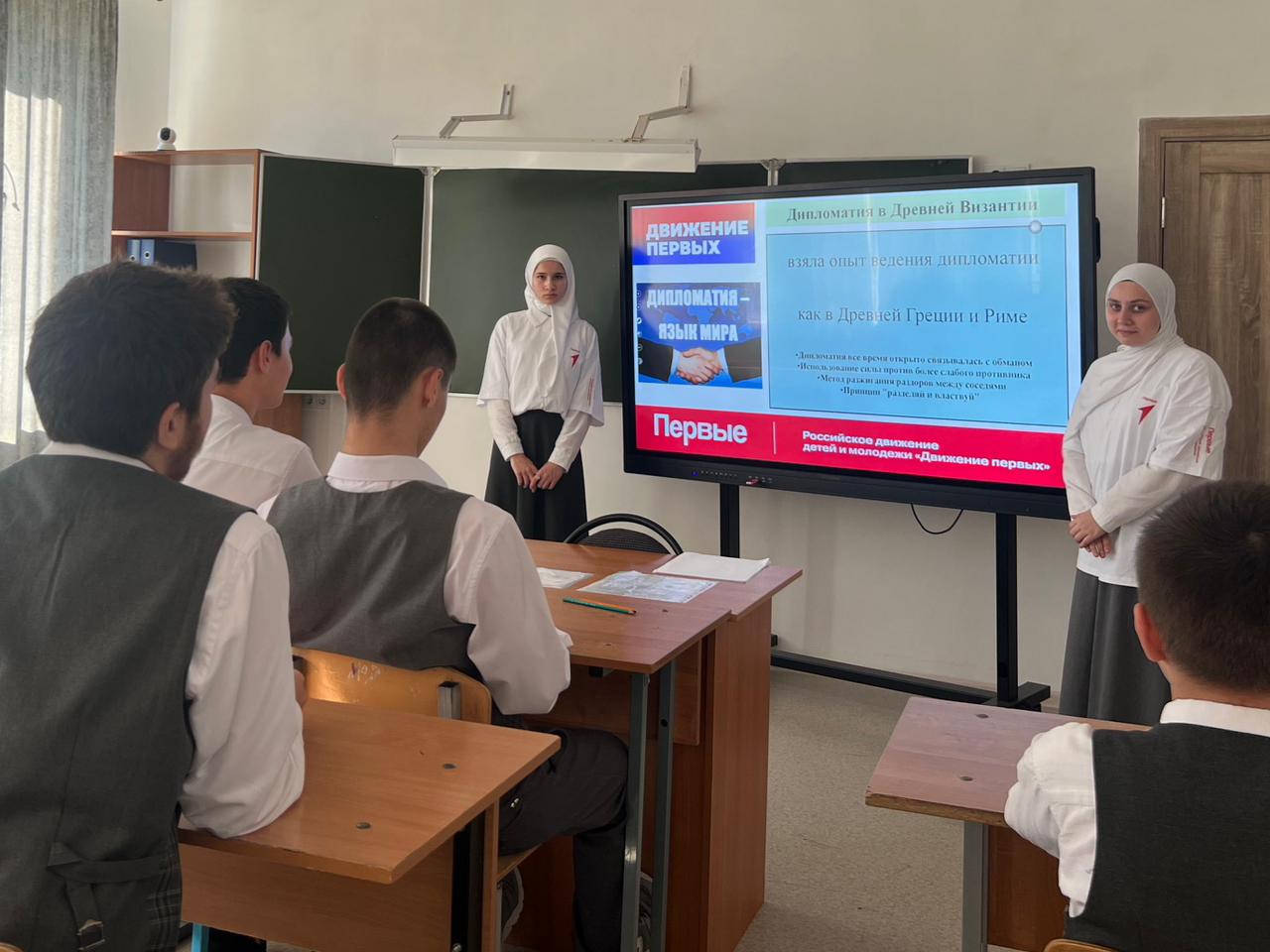 В ходе классного часа ребята подробно обсуждали, что такое дипломатия и почему она так важна. Они узнали, что дипломатия помогает решать конфликты и находить компромиссы между странами и людьми без насилия. Также рассматривали примеры реальных переговоров, где взаимопонимание и уважение сыграли ключевую роль.