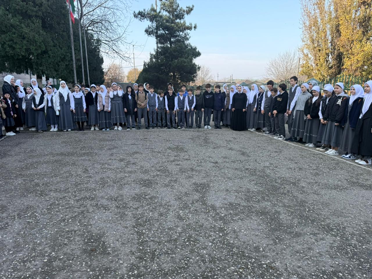 24.11.2025Учебная неделя в МБОУ «СОШ №63» г. Грозного традиционно началась с торжественной линейки. Для исполнений гимнов Российской Федерации и Чеченской Республики обучающиеся, педагоги и гости школы выстроились на школьном дворе, чтобы почтить государственные символы нашей страны и республики.