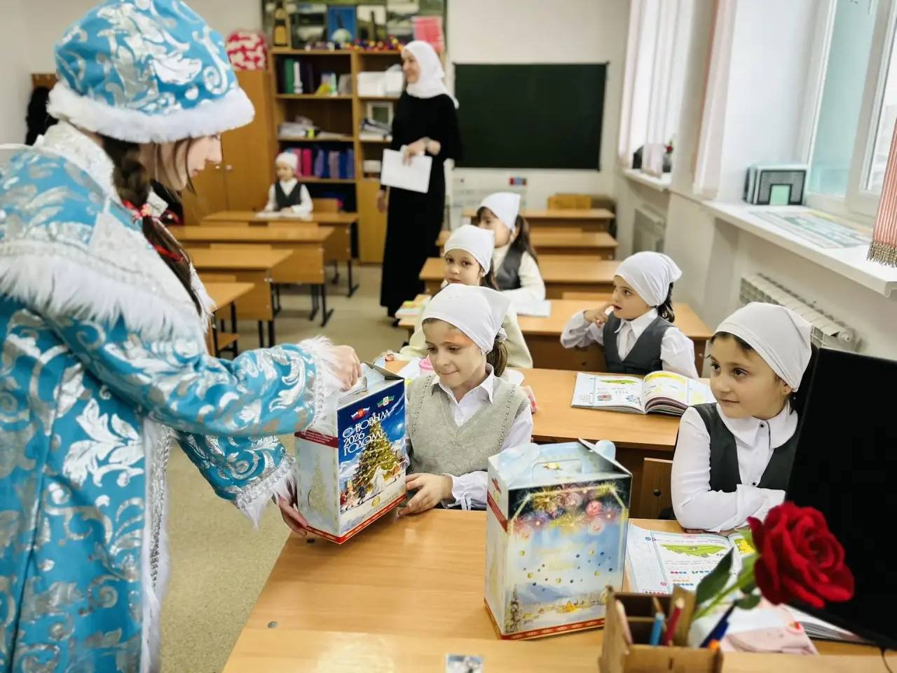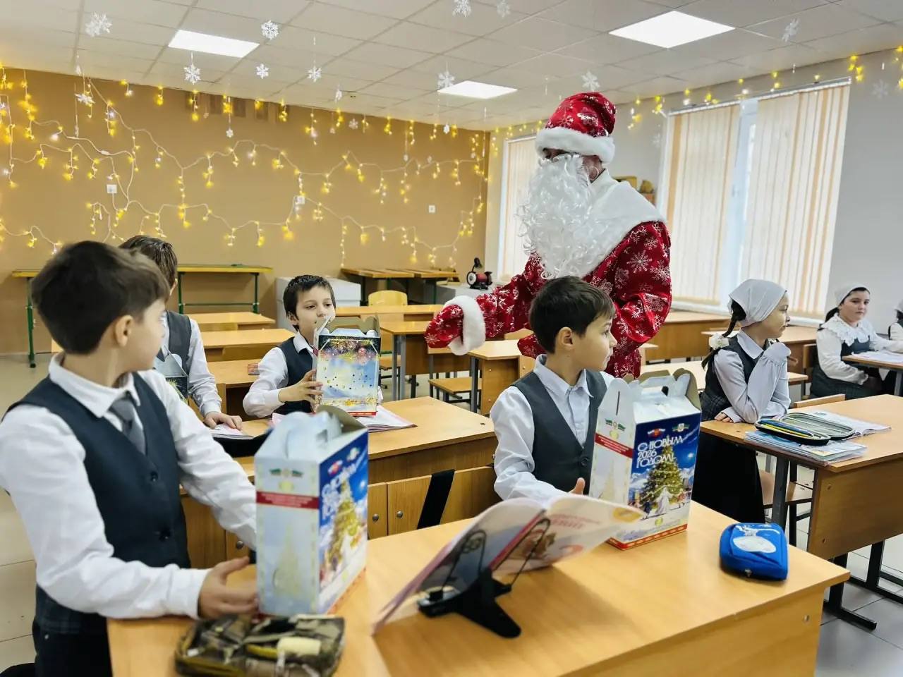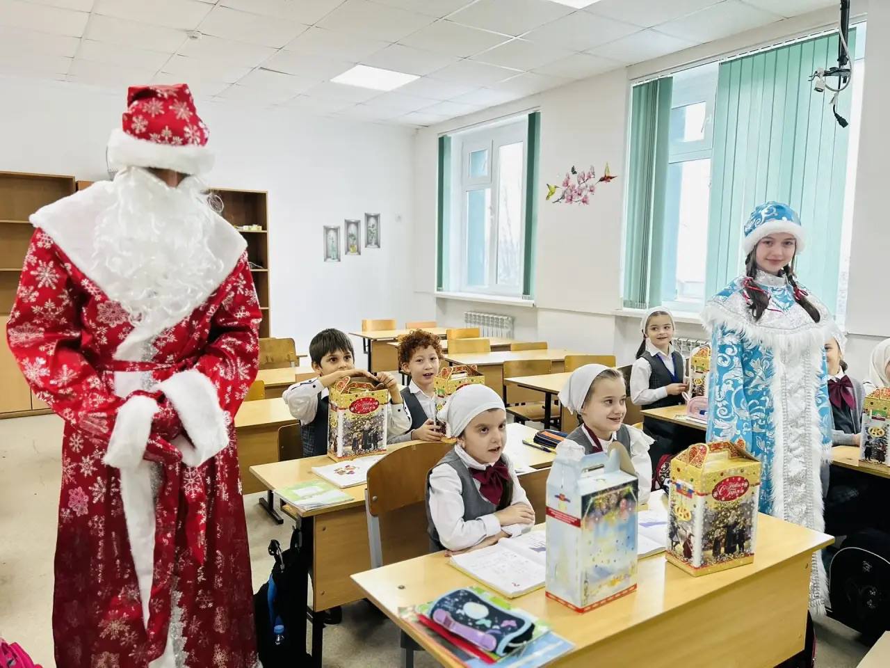 29.12.2025В преддверии самого волшебного праздника года обучающиеся начальных классов получили незабываемые подарки в рамках ежегодной новогодней благотворительной акции от Регионального общественного фонда имени Первого Президента Чеченской Республики, Героя России Ахмата‑Хаджи Кадырова (Дала гӀазот къобалдойла цуьнан).