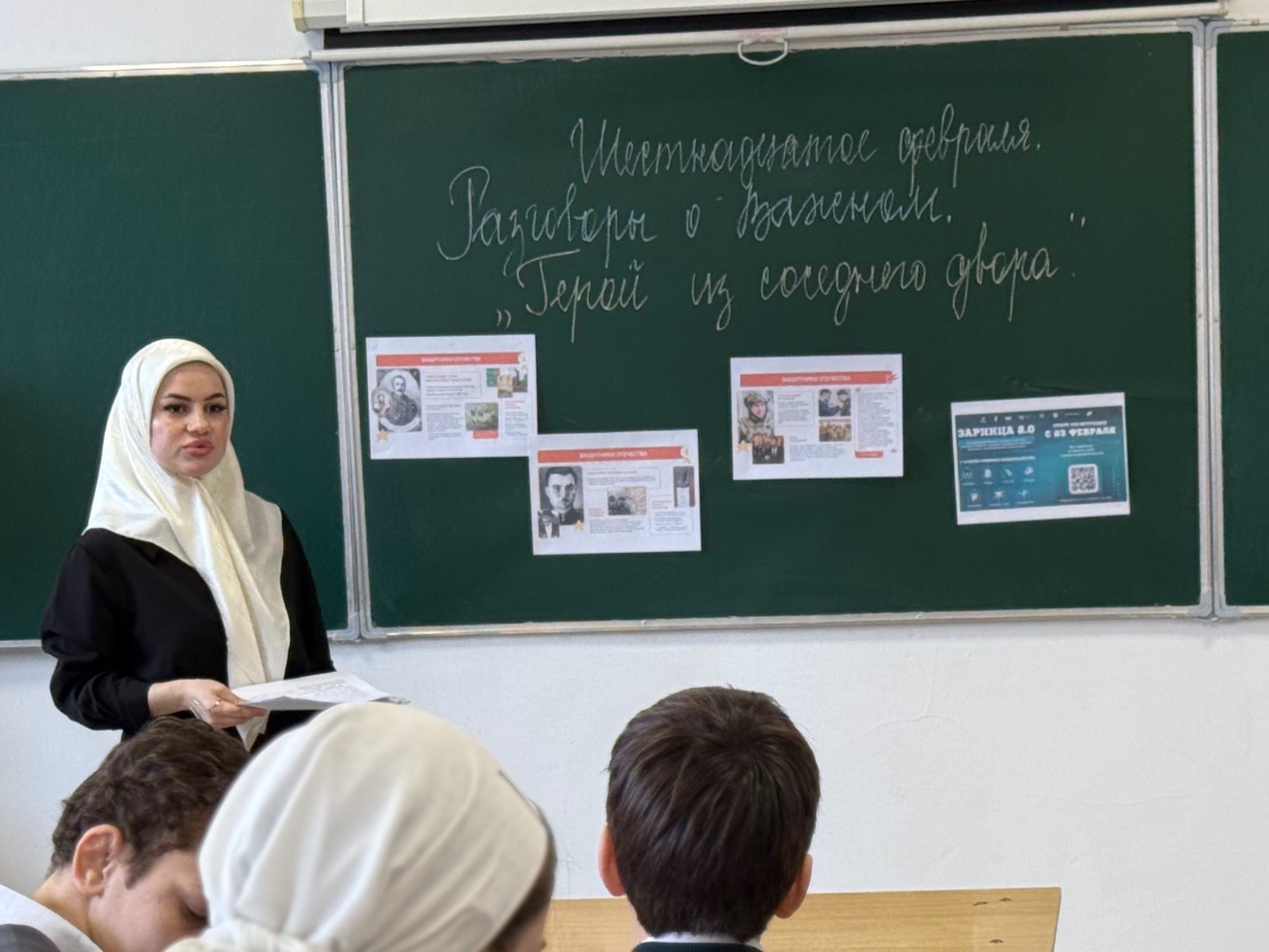 В ходе занятия школьники рассуждали о том, что значит быть защитником сегодня, какие качества формируют сильную личность и почему так важно сохранять память о подвигах наших соотечественников.
