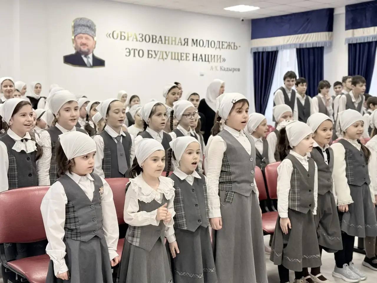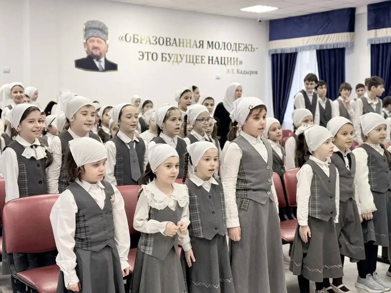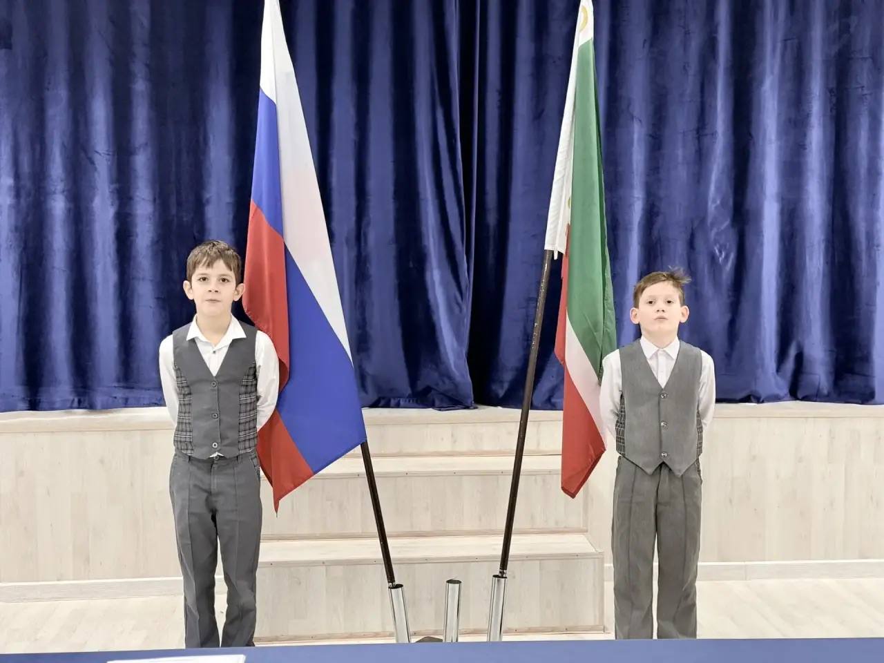 Под звуки гимнов Российской Федерации и Чеченской Республики актовый зал наполнился особой атмосферой уважения, единства и гордости. Обучающиеся и педагоги выстроились, чтобы вместе отдать дань государственным символам — символам силы, истории и будущего нашей страны и республики.
