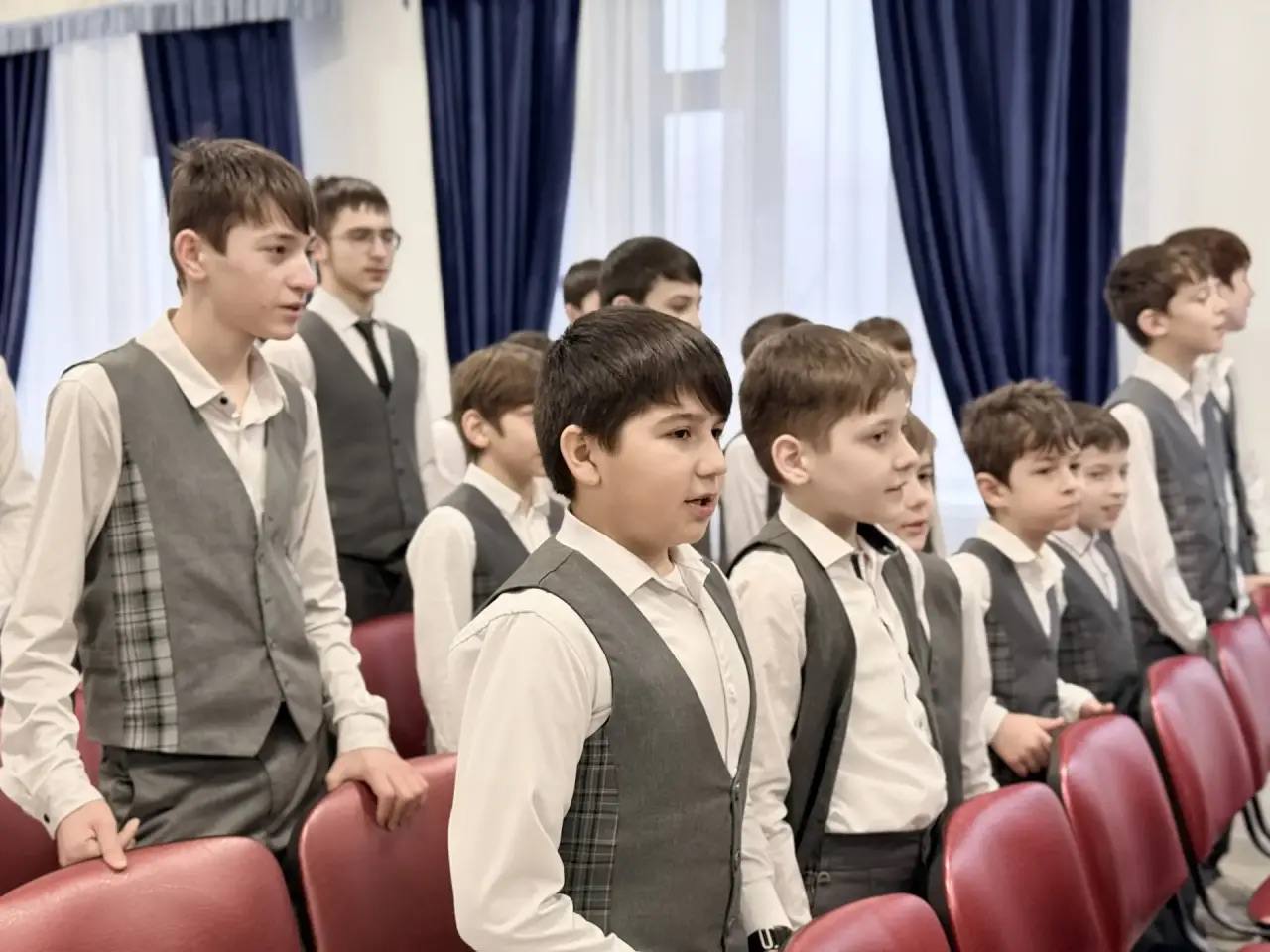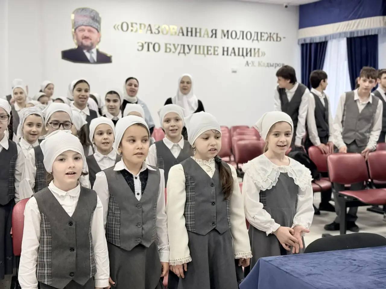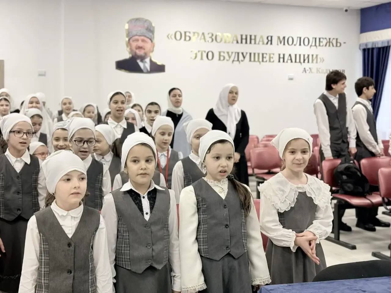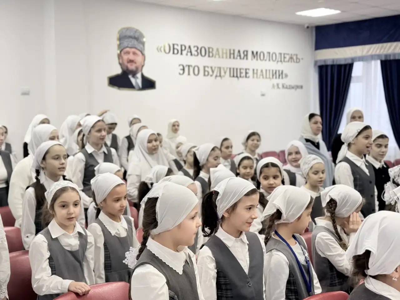 Под звуки гимнов Российской Федерации и Чеченской Республики актовый зал наполнился особой атмосферой уважения, единства и гордости. Обучающиеся и педагоги выстроились, чтобы вместе отдать дань государственным символам — символам силы, истории и будущего нашей страны и республики.